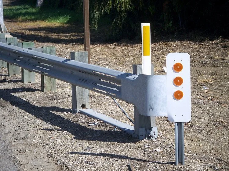 /The Slotted Rail Terminal (SRT-350™) is a gating, flared end terminal and is available in a 6-Post and 8-Post System. The SRT/HBA 6-Post System has 2 steel breakaway posts, 4 wood CRT posts, and is installed in a straight-line flare. The straight-line flare offers a simple layout on new installations. The 6-Post System also has steel breakaway posts that are typically reusable after NCHRP Report 350 criteria impacts. The SRT 8-Post System has 2 tube sleeves/wood posts, 6 wood CRT posts, and installs on a parabolic flare. The parabolic flare has a “footprint” similar to the previously used BCTs and MELTs, making replacement easier.
